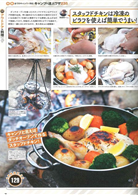 而在露營時,除了可以烤肉之外,也可以利用章魚燒鐵盤來做出大人小孩都喜歡的章魚燒,而除了章魚燒之外,剩下的章魚也可以做成大人的下酒菜-油漬章魚,或者是用章魚燒鐵盤來做美味的雞蛋糕。適合露營的春夏季節終於來到,為了露營初學者的你,本誌將要透過「搭帳篷」、「生火」、「戶外料理」、「舒適睡眠」以及「撤收」…等章節,由戶外露營達人們來和大家分享235個便利秘訣。
