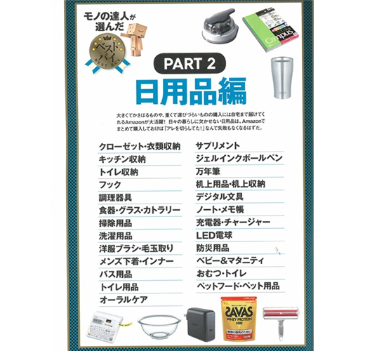 在台灣我們比較常使用的電子商務像是PChome、Yahoo的平台來購買各式各樣的商品,近年來也有像蝦皮、486團購的網路電商異軍突起。隨著網路的無遠弗屆、科技的日新月異帶動人們網路購物的熱潮,再加上線上安全交易平台,讓「跨境消費」顯得更加的便利,日本的Amazon,有著廣大的電子商務資源與各種優秀的商家製品,除了日本國內,台灣的使用者也喜愛透過日本Amazon來尋找自己想要的實用商品,特別是有著優異功能的家電及日用品,在本誌當中我們將收錄 Amazon購物網站各式各樣最新的話題商品,從排行榜首位的製品到限定版的絕品,透過各類專業人士的使用介紹與比較讓您活用與挖掘超優質的買物商品!按照類別分門別類的收錄商品內容,讓您一目了然快速找到想要的商品!