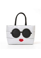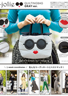 以大人可愛的時髦氣氛備受喜愛的流行品牌a-jolie,為大家送上最新設計提包。珍珠鏡框加上皮革風的鏡面,做出a-jolie招牌的太陽眼鏡圖案,搭配帶有光澤感的鋪棉材質,共同營造出幽默華麗感,還有搶眼的紅唇刺繡,增加品牌質感的官方織標,以及500ml寶特瓶也裝得下的實用容量,都讓這款設計更加討喜。袋口的蝴蝶結綁起來可愛,不綁就是維持俐落輪廓,怎麼樣都好看。在此推薦的灰色款走優雅淑女風,如果喜歡帥氣一點的感覺,不妨參考另一個黑色款。