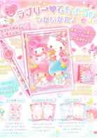 附加商品說明:可愛的手帳上面有HELLO KITTY、美樂蒂、雙子星的圖案,而且還附有一支筆可以做重要、趣味事情的紀錄等工作。