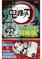 附加商品說明:10/2將發行第22集特裝版,收錄在少年 JUMP GIGA 2017 Vol.3 所附錄的小冊子「鬼殺隊報特別報告書」的復刻版以及8個徽章組,另外也將附贈漫畫第40回「火神」的分鏡,帶領讀者一同回顧炭治郎首次使用火之神神樂戰鬥的一幕。8款徽章(38mm*6個、70mm*2個)。