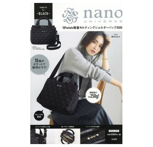 繼上一次大受歡迎的星星模樣車棉包商品之後,nano UNIVERSE再次推出有10個收納口袋設計的黑色輕量時尚肩提包商品,更容易與服飾做搭配使用,整個包包的重量竟然只有250公克而已,而且還包含雙拉鍊的重量在裡面,拉鍊所使用的是可愛的星星模樣拉鍊頭,因為輕量化的設計讓使用時不會再因包包的重量造成肩頸的負擔,而該款包包的特色還不只有這些,它還有可調整長度的肩背帶可以隨喜好裝置或和取下。除美麗的造型商品之外,本次還有冬季的最新商品介紹,粉絲們千萬別錯過了。