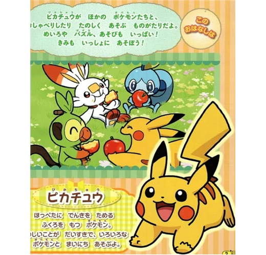 不論是大朋友還是小朋友都會對有著長耳朵、大眼睛、2個大腮紅、笑口常開的黃色皮卡丘有著很深的印象,就像海綿寶寶一樣,就算是幼稚園的小小孩也可以輕鬆畫出他的模樣,而此次擁有高人氣的可愛皮卡丘將會在哪些場合、遇到哪些寶可夢呢?這本從4歲就可以開始閱讀的寶可夢漫畫書,皮卡丘和寶可夢們會用談話的方式和遊戲等方法來與大、小粉絲們做交流,每個作品皆標有數字號碼,所以首次閱讀漫畫的小粉絲也不會有閱讀順序上的困擾,再加上本誌的尺寸剛好可以放入小朋友們的包包內,因此可以讓他們隨身攜帶也沒關係,本次除趣味漫畫內容之外,還有走迷宮、拼圖、謎猜等有關知育遊戲內容包含在內,可以讓小朋友們從頭閱讀到結束也不會覺得累,而且還會想再從頭閱讀一次,這就是本誌最大魅力之處。