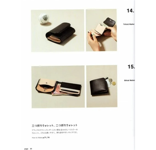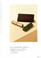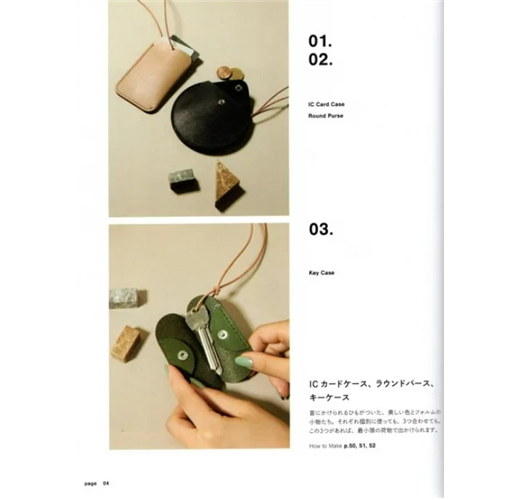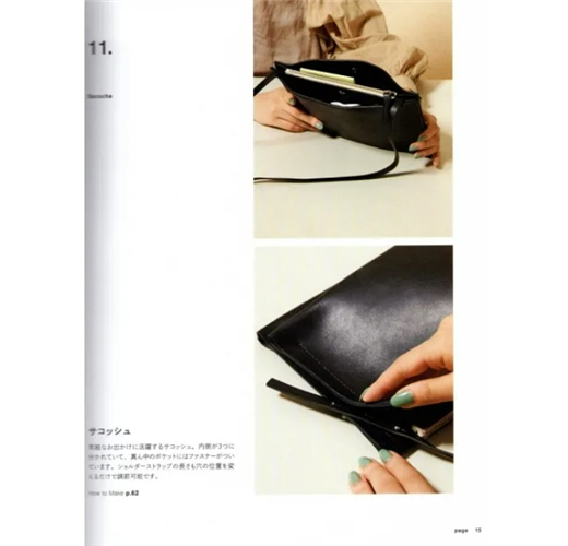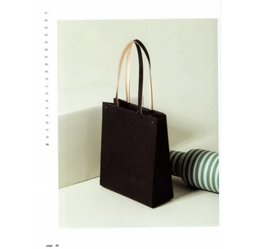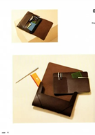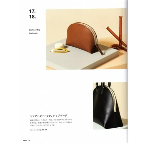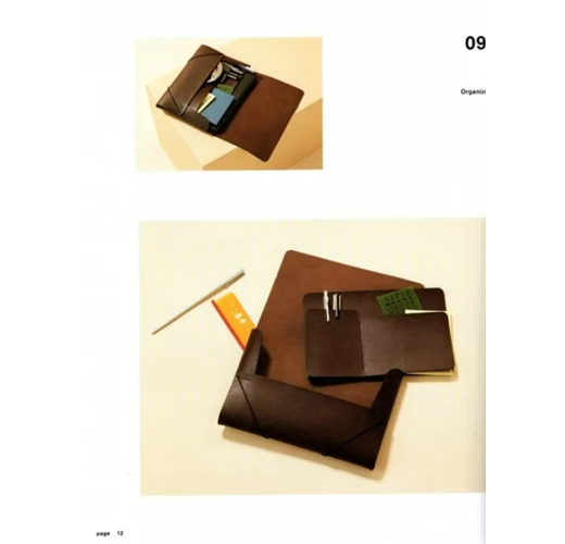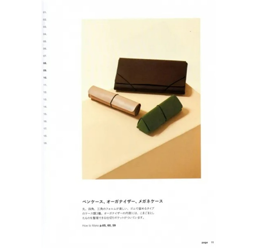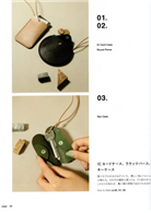 誌中所提案的19件作品,都屬於極簡風的設計,展現出低調奢華的優雅品味。款式雖然簡約,功能性卻絲毫不減。從材料與工具介紹、型紙的製作、皮革的裁切、手縫的方法、到金屬零件安裝等的基礎技法與重點要領,特別透過寫真步驟示範來送上18頁的教學解說。收錄的19款作品包含了票卡匣、零錢包、鑰匙包、手機袋、筆袋、整理包、眼鏡盒、卡片匣、斜背包、三折&兩折皮夾、手拿包、提包、肩背手提兩用包等,附上實物大型紙與作法解說,提供給有興趣的朋友。