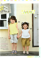 不分男孩女孩都可以穿的七分褲,兩側貼上大口袋,設計成工作褲的感覺。除了圖片中的迷彩款之外,另外還收錄素色、條紋、花卉圖案3種不同花色布料的款式。