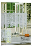 方眼蕾絲構築成薔薇圖樣,雙雙對稱,佈置在廚房窗台,午後的斜陽照射,映出浪漫的剪影。