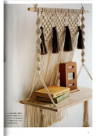 MACRAME花編結飾加上木板、木棍,編織出能壁掛在牆上的小平台,順著木棍垂下的線段加上異色流蘇,展現浪漫氛圍。