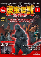 東寶怪獸模型收藏特刊,首次以1比700的比例製作怪獸模型,收錄從1954年至2016年的所有哥吉拉,包括東寶特效電影中出現的60多隻以上的哥吉拉與怪獸,而作為東寶怪獸史上第一個收藏系列,之中所有的模型造型、各部細節與塗色等也都相當的精緻呈現,大家可以看見歷代的哥斯拉和怪獸齊聚一堂,此外也透過擁有豐富經驗的技巧達人-茨木彰,以東寶原型來監修製作,也因此獲得完成超越時代並自豪的東寶怪獸系列的評價,內容也將徹底解說歷屆東寶電影中的所有特效,此外,還將附上本雜誌獨有的雕刻家技巧解說,以及每期強力怪物的巨型海報。