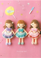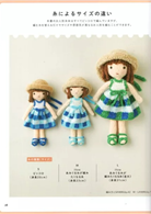 同樣的編織用圖改換不同的指定線材編織,完成的娃娃大小也會不一樣,在此不同尺寸的娃娃一字排開比身高。
