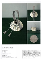 據說是武田信玄前往戰場途中用來裝各種小物因而得名的信玄袋,與一般束口袋的主要差異就在於另外製作掛耳來穿繩,收束時袋口比較不會皺在一起。有著橢圓形底部的簍形袋,上下段選用了不同的布料來製作。或是也可以直接在下半部以簍子來取代,做成結合兩種材質的作品。
