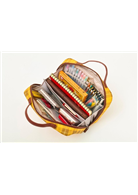 為了慶祝SAKURA CRAY-PAS油性蠟筆誕生100週年,在此特地以充滿復古情調的包裝圖案為設計重點,帶來一款獨一無二的文具收納包。正面印上和蠟筆外包裝一樣的可愛圖案,側面用格紋增添設計質感,裡面兩側都有網布口袋,中間還有三個夾層,不但裝得下A5尺寸的筆記本或手帳,貼紙、筆、蠟筆、剪刀、便條紙、計算機…等文具小物也通通放得進去,收納功能沒話說,也可以用來裝美妝品或旅行雜貨,容量很大值得期待。