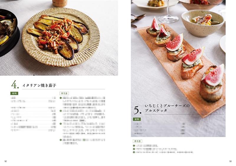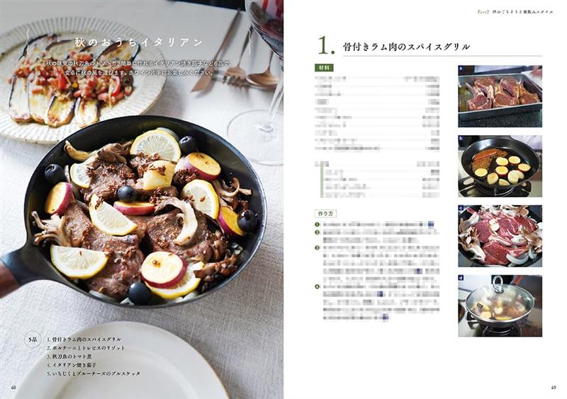 秋季的居家義式料理,誌中提案了秋季風味代表性的番茄煮秋刀魚、作法簡單的義式烤茄子、香煎帶骨小羊排、牛肝菌紫甘藍燉飯、以及無花果藍起司普切塔(前菜)等5道食譜。