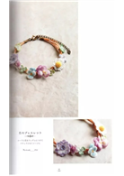 收錄的作品展現了豐富的花卉種類與設計變化。櫻花作品以淡雅色調與精細入微的工藝展現宛如真花般的美麗質感;鮮豔藍色蝴蝶項鍊展現了相同圖案透過不同色彩運用所創造的視覺變化;花束耳環將各種花卉如花束般組合,可依個人喜好進行花材調整。這些使用極細線材編織的真實感迷你花朵,因為所需材料相對較少,即使是初學者也能輕鬆嘗試,而其中首次公開的溫柔色彩染色技法更是珍貴的學習資源。