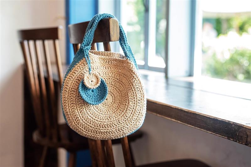 搭配同色圓形吊飾的雙色圓形提包看起來獨特又討喜,容量也值得期待,手提大小就很實用囉。