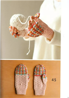 以ARAN織紋最經典的生命之木為主題,帶來樸實可愛的設計手套,如果覺得單色太單調,不妨試著在手腕處加上其他色彩創造變化。
