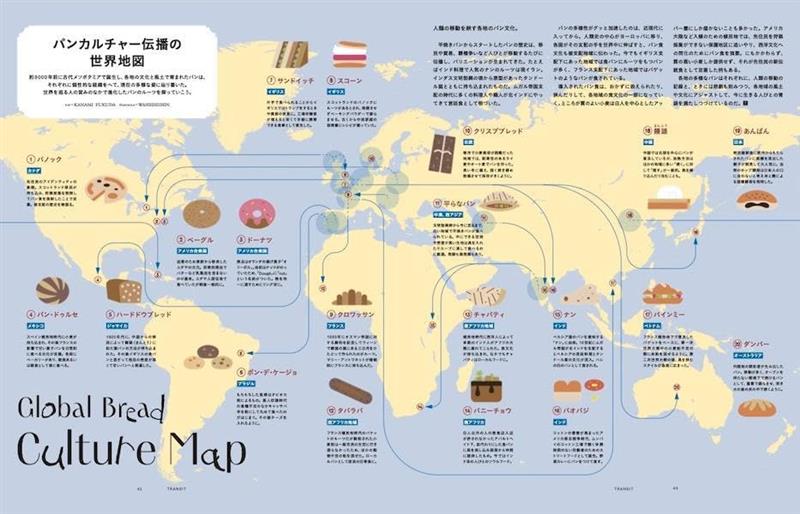 昨年発売し好評を博した「TRANSIT65号 世界のパンをめぐる冒険」特集。「創世編」の発売から一年、いよいよ「進化編」の登場です。大航海時代以降、海を渡り、世界を旅してきたパン。世の中が豊かになるにつれて単なる食糧としての域を越え、食べる喜びをもたらし、人びとをつなぐ存在として、その土地の人びとに寄り添い変化してきました。移民の国アメリカ、フランス植民地時代の面影が残るベトナム、そして最先端の美食が世界中のグルマンから注目されているデンマーク……。昭和以降多様化をつづける、日本のパンシーンにも注目です。土地土地の文化を表すパンと、あちこちで起こっているパンのムーブメントを追い、その未来に思いを馳せてみる一冊です。