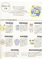 這回附上的贈品包含了印有「Pokémon Peaceful Place」可愛角色圖案的收納包、皮卡丘圖案壓克力牌鑰匙圈,以及誌內夾頁的聖代造型特製MEMO(便箋)。在內容方面,則是收錄了角色介紹、最新商品大集合(家家酒道具、療癒系玩偶、文具用品、外出用包袋、美妝系用品、角色吊飾與裝飾、娛樂專用景品、本期附錄介紹)、網路連載中的「Pokémon Peaceful Place」故事、角色著色圖,以及多種好玩的遊戲。