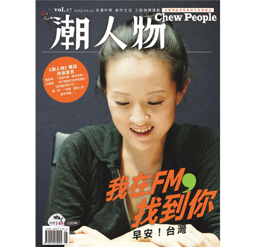 《潮人物》自1月號起,加入科技人文元素,開春第一炮推出「廣播」專題!傳統的談話節目聽膩了,我們給你人氣最高的廣播王牌:警廣《如國俱樂部》,琇如和阿國天衣無縫的默契搭配。中廣《人來瘋》三小時,體驗黎明柔的知性魅力。中廣《Midnight You & Me》,豆子哥陪你熱鬧渡凌晨。飛碟《青春點點點》,馬克瑪麗笑鬧無冷場。ICRT《The Morning Show》,英格利許滿點嚼西洋。以往,《潮人物》說故事,陪你喝咖啡、聊是非;2013,《潮人物》還是陪你喝咖啡,聊大是大非,找尋生活中的「科技元素」,原來,我們的心中,都有顆「科普」種子。