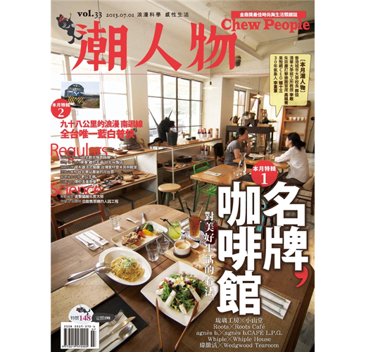 五家名牌咖啡館,五種獨立迷人的特色,〈名牌咖啡館〉主題,提供你夏日炎炎的避暑去處:小山堂,藝文人士聚會之地。Agn è s b. CAFÉ L.P.G.,時尚雅痞必定造訪。Roots Café,北國原木溫暖色系。Whiple House,美感強烈個人主義。Wedgwood Tearoom,皇家貴族隱身民間。坐火車旅行,永遠不落伍,來屏東枋寮搭普快,兩個半小時遍覽山海景,沿線拍拍照聊聊天,到台東下車玩水去,〈九十八公里的浪漫,藍白普快〉幫你捕捉不可錯過的美景。〈科學家的腦袋 專訪香城市大學校長郭位〉藉專家之口,幫你釐清核能疑慮;〈工程人的風骨 專訪清大核工所李敏〉藉工程人之口,替你剖析核電廠興建邏輯。〈編織空中軌道〉全程直擊貓覽停駛大修過程,外國技師全程參與系統總體檢。〈玉山上的駱駝〉王寶釧苦守寒窯十八載不稀奇,李臺軍在玉山頂一待三十年。〈明星夢工廠〉、〈都市一百〉呈現兩大帥哥:演藝明日之星楊鎮,與氣質帥哥漫畫家安哲,聽兩大型男講述精彩人生。新專欄!〈送禮達人〉Gavin老師開講,教你送禮送到心坎裡;〈四海八方〉范智明帶你深入美斯樂,探索孤軍後裔的日常生活。