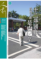 十二年國教經各界討論數十年,終於在二○一一年馬英九的總統元旦祝詞發表後,開始上路。這本應是台灣教育史上的大事,而確實也成了大事︱家長、學生,乃至學者、教師反彈之力道、意見之分歧,不可謂不大!