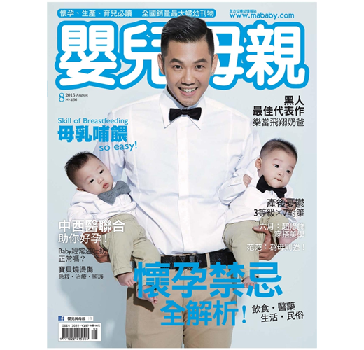 8月號,我們特別邀請黑人和雙胞胎兒子拍攝父親節封面。看黑人左擁右抱,樂當飛翔奶爸,真是讓人羨慕!「愛,要大聲說出來!」本刊徵求「給另一半的甜言蜜語」,只要在2015年8月31日前,e-mail或郵寄100字以內甜言蜜語,將有機會獲得黑人、范范「簽名」精美baby禮盒。