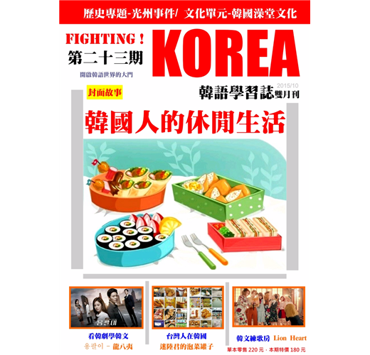 本期的封面主題的內容是韓國人的休閒生活,其中舉出三種情境(爬山、野餐、看電影),讓學員們更深入了解韓國人的日常生活;同時也能學習到相關的單字與文法。