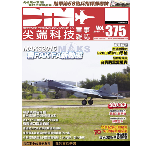 尖端科技軍事雜誌(defense technology monthly,dtm)是中華民國民間所創辦的第一份專業軍事刊物,以報導各國武器裝備近況,國防科技新發展,國軍與世界軍事新聞為主,自1984年1月創刊以來,與世界各大軍火廠商(如bae、bell、boeing、gait、iai、gd、saab..)及軍事新聞單位(如美國國防部、美國海軍、日本防衛廳、北大西洋公約總部…)等連絡,可長期提供應軍事新聞,並有海外特派員,負責當地的軍聞收集及採訪。