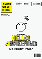 「人工智慧」究竟是天使或魔鬼?這是一個眾說紛紜的問題,本期《英語島》將邀請產官學界代表,試著從我們工作與生活等不同領域,帶領大家來揭開「人工智慧」的神祕面紗。這回,我很榮幸有機會可以和《英語島》同仁們一起發想、製作這次的封面故事與專題,也期待和大家一起來瞭解「人工智慧」所帶來的趨勢、商機、衝擊以及影響!