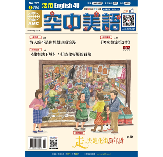 本月封面來自青林國際出版之《走,去迪化街買年貨》,故事從阿瑞跟著爺爺辦年貨開始,帶領讀者沿路感受迪化街這條年節氣氛濃厚的老街。想知道各個年貨的英文名稱嗎?不要錯過本月限定的春節主題會話,搭配繪本裡精美的插畫,認識年節常見的各式乾貨,過一個充滿濃濃年味的二月!