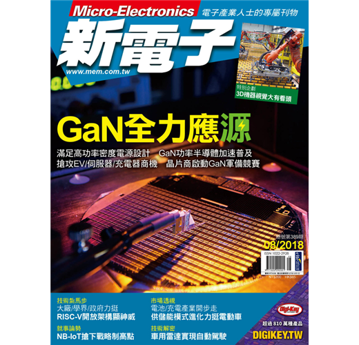 現今電子系統持續朝大功率、小體積發展,使得電源系統散熱和轉換效率面臨嚴苛的挑戰;而目前矽材料所製成的功率元件性能逐漸接近理論極限,在電子系統電源效率的提升上也遭逢了瓶頸。因此,電源供應商紛紛轉往寬能隙功率半導體發展,GaN因而成為電源設計新寵兒,其商機和普及率也跟著火速成長。