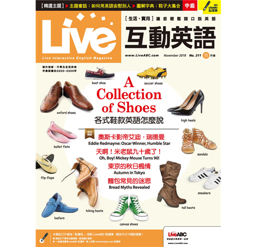 特別收錄 / 編輯的話:鞋子是我們日常生活中不可或缺的一項單品,而今也有各種功能、各式花樣設計的鞋款,本期的【生活情境對話】單元就要介紹各種常見鞋款的英文說法,讓你要用英語買鞋沒煩惱。接著再來跟大家聊一聊與鞋子有關的用語!
