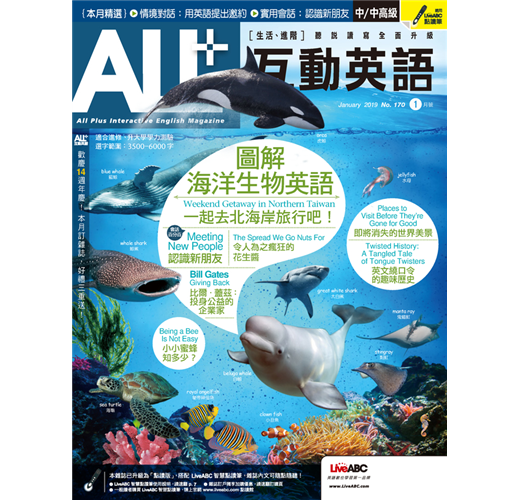 除了上述單元,本期還有其他精彩內容:文學單元收錄北歐神話「〈雷神之鎚的由來〉」 ,「小小蜜蜂知多少?」要告訴你這些小昆蟲的習性與有趣的事實。而「令人為之瘋狂的花生醬」則要告訴你花生醬意想不到的妙用。以上這些豐富有趣的內容,讓你在學英語的過程中也能吸收新知,若你在學習過程中有任何疑問或建議,歡迎來信allplus_editor@liveabc.com,或上Facebook 粉絲專頁:ALL+ 互動英語雜誌留言。在此祝你學習愉快!
