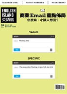 本期英語島的封面故事,很貼心地準備了針對台灣人寫英文信時可以參考的SOP跟正式用語。網路上眼花瞭亂的「3步驟寫好商業信」或是「商務信萬用模板」先放到一旁,有時候錯的不是文法,而是「中式想法」。差一點而已,你一定能寫出讓人想回覆的信。