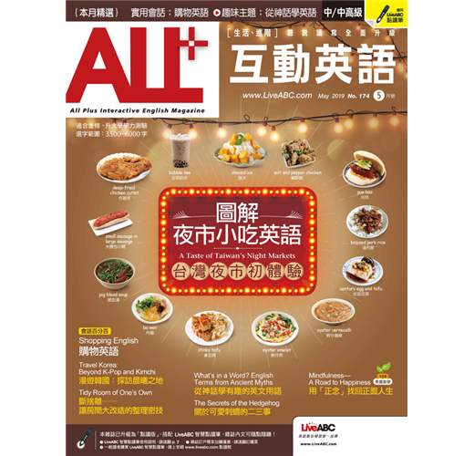 除了上述單元,本期還有其他精彩內容,「關於可愛刺蝟的二三事」介紹這個小動物的有趣知識;會話百分百「購物英語」有實用的購物英語對話,讓你出國購物不再雞同鴨講;文學單元收錄知名驚悚短篇故事「〈猴掌〉」。以上這些豐富有趣的內容,讓你在學英語的過程中也能吸收新知,若你在學習過程中有任何疑問或建議,歡迎來信allplus_editor@liveabc.com,或上Facebook 粉絲專頁:ALL+ 互動英語雜誌留言。在此祝你學習愉快!