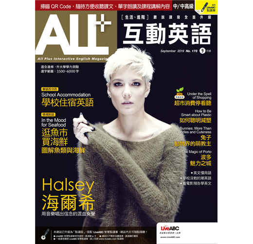 除了上述介紹的單元,還有其他精彩內容,像是從「金玉良言——與金錢相關的英文慣用語」你可以學到有趣又實用的說法;「圖解魚類與海鮮」及「逛魚市,買海鮮」教你如何用英語逛漁市買海鮮。以上這些豐富有趣的內容,讓你在學英語的過程中也能吸收新知,若你在學習過程中有任何疑問或建議,歡迎來信allplus_editor@liveabc.com,或上Facebook粉絲專頁:ALL+ 互動英語雜誌留言。在此祝你學習愉快!
