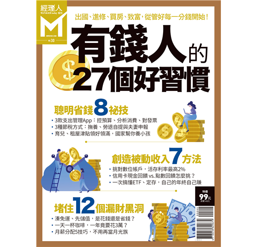理財是一輩子的課題,無論股票、基金市場,每天的變動都很難預測,最後能成功創造財富的人,往往有著清楚冷靜的頭腦,對自己的金錢控管足夠自律,以及不只「想」變有錢人,而是「要」變有錢人的行動力。