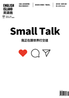 在製作本期的主題Small Talk時,我們還看到了更多英文的可能性。Small talk翻作中文是閒聊、瞎聊、尬聊,任何一種非正式的或目的曖昧的談話,都可以稱作small talk。這種談話看似無用,在英文世界卻很有自己的一席之地,有人說,在重視「connection」的美式文化中,small talk是獲得彼此信任的重要技能。