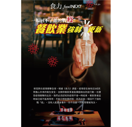 新冠肺炎疫情衝擊全球,根據《食力》調查,疫情發生後有近8成民眾擔心外食的衛生安全,並期待餐飲業者能積極做出防疫行動。在遭 受疫情衝擊的此刻,我們必須認知到疫情不會一時結束,餐飲業者這時候已經不能再等待、不能只想依靠紓困,因為這是一場回不了頭的 戰「疫」,沒有人能置身事外,你不改變、只能等著被淘汰。
