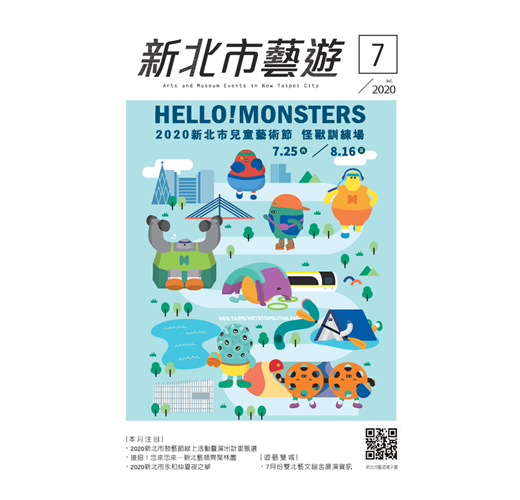 新北市政府發行的藝文訊息刊物《新北市藝遊》2020年7月號已經出刊,介紹7月份新北市各地重要藝文訊息,共發行2.7萬冊,搭配英、日、韓文摺頁,陳列於大台北地區各捷運、高鐵站、藝文館所、圖書館及新北市各區公所,供民眾免費取閱。