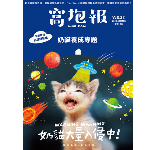 除了專題外,還有特寵飼主Sashimi 與毛孩飼主邵庭的獨家對談、毛孩家庭醫學深入解析貓鼻氣管炎、奇異貓形狀的攝影徵件,更有精美別冊教你如何帶新貓認識舊貓,一本雜誌裡塞滿豐富內容與深度知識,是窩抱報始終不變的初衷。