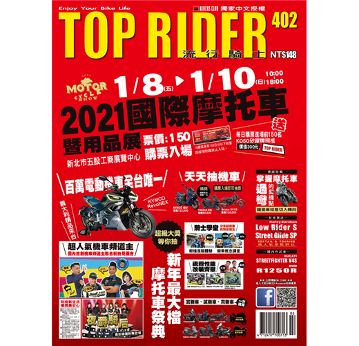 迎接2021年的首場二輪展會1/8-10於新北市工商展覽中心登場,匯集亮點新車、超人氣機車頻道主、視覺性能改裝齊聚、性感Dancer表演,還有天天抽機車大獎的好康,預知詳情請速見內頁。