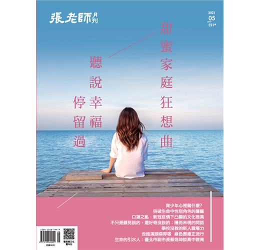 521 期的張老師月刊或許是將每個人的悲、喜、哀、樂統統都挖掘出來的一期喔!在這一期中,探討了家庭中不同面向的創傷,每個人的故事都在裡面,希望大家閱讀時不要太壓抑,真難過時,就將悲傷流洩出來吧,流完淚後繼續讀完,然後,好好修正自己,試試看用我們提到的這些方式改善自己、家庭與周遭環境,努力追尋幸福。