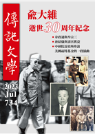 前國防部部長俞大維,在其任內曾經歷大陳島撤退、八二三砲戰等重大歷史事件。俞大維出身自浙江紹興望族,家族人才輩出,但他不落人後,在學術上充分展現才華。儘管他無黨無派,卻為國家奉獻一切。抗戰時擔任兵工署長,致力於兵工業現代化與戰時彈藥供應。抗戰後曾出任交通部長,來台後擔任國防部長,對於打造反共基地、建立台澎金馬防禦體系有著重要貢獻。哲人日已遠,典型在夙昔。今年是俞大維先生逝世三十周年,傳記文學有幸與俞大維先生紀念學會合作,為讀者帶來多個與俞大維結下不解之緣的故事。