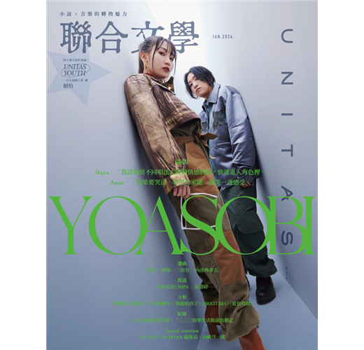 由作曲家Ayase與歌手ikura組成的雙人樂團YOASOBI,在二〇一九年憑著出道曲〈向夜晚奔去〉爆紅,以「小說音樂化」為特色,在出道四年間,已經成為代表性的J-POP樂團。本期專輯以「YOASOBI」為主題,以YOASOBI的重磅訪問為始,接續音樂相關的小說與動畫原著,全面盤點故事的起源,也邀請四位作家選曲並撰寫專文;另外,特別邀請到了日本樂評人ROCKIN’ ON JAPAN編集長山崎洋一郎,為讀者們揭示日本視角下的YOASOBI;此外,我們也邀請「宇宙電波UNIPA」的Jesse與「裝咖人」的張嘉祥,從「小說音樂化」的角度來詮釋YOASOBI的跨界魅力。