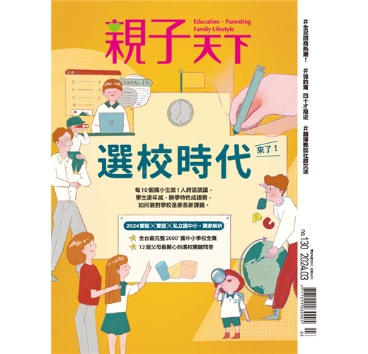 然而,跑愈遠就能學愈好嗎?如何在眾多特色國中小學之中,選到適合孩子的那一所?2024年3月1日出刊的《親子天下》第130期季刊,將聚焦家長最關心的「雙語公校」、「私立學校」、「實驗學校」的最新辦學趨勢,獨家整理全國最完整2,000所以上國中小的特色清單,陪家長在三月選校季好好做決定!