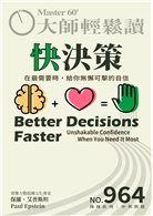 人生可以簡化歸納為一個決策與行動的遊戲。「腦+心=手」公式讓你得到清晰、自信、堅定和勇氣,4種有力的武器,讓你知道自己可以持續更快做出最好決策。