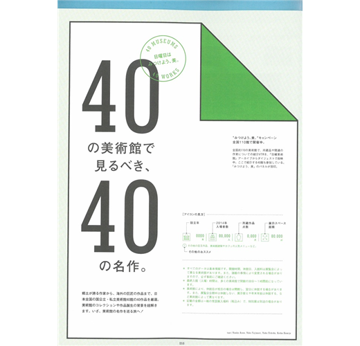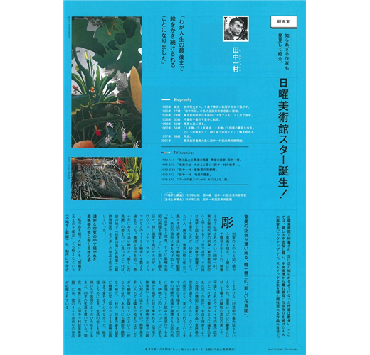 1976年4月啟動放送的NHK「日曜美術館」,在今年正式迎接40週年紀念,單元內容涵蓋繪畫、雕刻、工藝、現代藝術,從中可欣賞來自各領域的藝術作品,並理解貫徹於作品之中的巨匠想法和隱藏在卓越技術背後的秘密;現場更不定期邀請重量級來賓,以獨自觀點發表對作品的看法和印象。