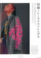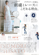 傳承一世紀以上的Lesage刺繡工坊,是由高級訂製服之父「Charles Frederick Worth」於1858年所創,堅持全手工的精美刺繡,為知名大品牌製作時裝配件。單元實際走訪Lesage,拜訪現任藝術總監,一窺其歷史與精湛技術。封面人物請到女星小松菜奈,由知名寫真家川島小鳥負責掌鏡,拍下她穿著蕾絲刺繡服裝於東京街頭的模樣;另公開業界十大頂尖設計師鍾愛刺繡與蕾絲的理由,以及本誌精選、今後活躍度值得關注的新銳刺繡作家圖鑑。