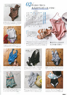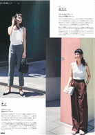 打褶綁帶寬褲、褲管開叉設計;單元首先要推薦的是即便沒有高跟鞋、厚底鞋的幫忙,一樣能讓腿看來修長的不得了的設計褲款,還有剪裁寬鬆舒適依舊擁有修身腿長的進化系丹寧牛仔褲。另介紹2分鐘內快速完成的髮圈編髮造型,還有炎夏拯救脫妝的補妝技巧和大人時尚泳裝特選。