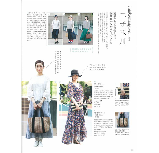 今年夏天,街上真正流行的是什麼風格呢?不同於打扮前衛的年輕女生,年過40的成熟大人更懂得什麼顏色適合自己、什麼設計能修飾身材比例,為了讓讀者有更多參考選擇,今回自然生活風格服飾特別前進日本全國六大都市,從表參道至銀座、二子玉川、大阪、京都、神戶;看看大家的日常便服隱藏了那些巧思。